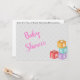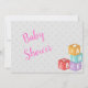Reúne a sus amigos y familiares para una deliciosa invitación a una ducha de bebé chica con un encantador fondo de burbujas grises, alegre texto rosa y juguetones bloques ABC.