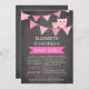 Comience su contemporáneo Es un Chica bebé ducha de bebé justo con nuestro moderno búho de pizarra con la invitación de la ducha de bebé con el embalaje rosado. Nuestra elegante y moderna invitación a la ducha cuenta con un vestidor de bebé rosado con una lechuza rosa y un bebé lechón rosado para una ducha para chicas. Invierta la invitación para encontrar un popular pizarrón de montaña para un toque especial.