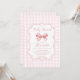 Celebra la próxima llegada de tu pequeño con nuestra Invitación de Baby Shower Pink Bow, una manera encantadora y encantadora de invitar a tus seres queridos a compartir tu alegría. Con un delicado arco dibujado a mano en suaves tonos rosados, esta invitación exuda dulzura y elegancia, perfecta para dar la bienvenida a una niña. Diseñada con cuidado y atención a los detalles, nuestra invitación está impresa en un material de cartón de alta calidad para mostrar el intrincado diseño de la proa con gusto. El elegante diseño garantiza que todos los detalles de tu evento se presenten con claridad, creando una primera impresión memorable para tus invitados. Personalice la invitación con el nombre de la futura madre, los detalles del evento y un mensaje especial para que sea único suyo. Ya sea que esté planeando una reunión acogedora en casa o una gran celebración, nuestra Invitación Baby Shower Pink Bow establece el tono perfecto para un acontecimiento alentador y alegre. Pida ahora que envíe esta exquisita invitación, asegurándose de que su ducha de bebé es tan elegante e inolvidable como los preciados momentos por venir.