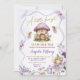 Invitación Baby Shower Chica de hadas moradas con flores de v