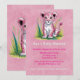 Celebra la llegada de tu pequeño cachorro con esta invitación a la ducha de bebé chica. Con una magnífica cachorro de león a la acuarela con manchas color rosado y suaves acentos de hierba, este diseño es perfecto para una ducha salvaje, safari o bebé silvestre con una sola temática. Una encantadora elección para darle la bienvenida a su bebé con estilo.