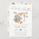 El diseño de la ducha de bebé es de estilo rústico y acogedor. La cuidada selección de prendas de vestir recuerda a un día inolvidable, mientras que la paleta de colores tierra y las texturas naturales de la vegetación y las flores aportan un toque ecológico y de tierra a la estética general. La caligrafía añade un toque personal al evento, elevándolo de una mera reunión a una ocasión verdaderamente especial y memorable. La tipografía, alegre y elegante, se completa perfectamente con la temática de la moda boho, añadiendo un ambiente de capricho y encanto. En general, la combinación de boho chica, vegetación, flores y caligrafía crea un ambiente de belleza natural, elegancia sin esfuerzo y encanto intemporal, lo que hace que una ducha de bebé sea un verdadero placer para todos los asistentes. Elementos coincidentes disponibles.
