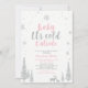 Celebra un día especial para tu ser querido con esta encantadora invitación de invierno. Este diseño presenta tipografía tipográfica tipográfica "baby It's fría afuera", copos de nieve, árboles de invierno, y ciervos con un tema de color plateado y rosa. Invitación perfecta para una ducha de bebé chica o para un chisporroteo de bebé. En mi tienda BaraBomDesign hay más suministros fiestas a juego.