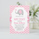 Invitación a Baby Shower del Chica de elefante gris rosa moderno | Invitación de Chevron Baby Shower