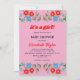 Esta elegante ducha de flores es perfecta para una moderna ducha de verano con flores. El diseño romántico presenta rosas azules y rojas florecientes con una elegante tipografía en negro y rojo sobre un fondo rosa rubor.