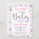 Invitación Baby Shower chica - Puntos rosados de plata morada