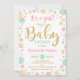 Invitación chica Baby Shower - Puntos de oro rosados, verdes de la menta y Purpurinas falsos.