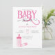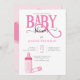 Invitación de BABY SHOWER rosada Adorable con tipografía de BEBÉS PINK y botella de bebé rosa.