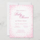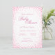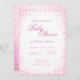 Una invitación a una niña con una ducha de bebé en tonos rosas y con una pintura de confeti rosa y una cinta de correr y un arco.