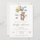 Invitación Baby Shower Cute Bear and Pastel Balloons