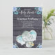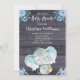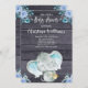 Invitación Baby Shower Cute Blue Elephant Rustic Boy
