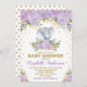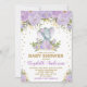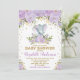 Invitación Baby Shower Cute Lavender Gold Floral Elephant