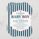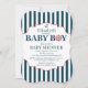 Agradable invitación a la ducha náutica para tu ducha de bebé. Nuestra moderna invitación a la ducha náutica para niños incluye un fondo de rayas azules y blancas con un ancla y una rueda de barcos. Si desea un toque especial, podrá voltear nuestra moda y un bebé con estilo. Perfecto para un barco náutico, velero, barco, barco, barco, verano o playa temática ducha de bebé