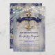 Las invitaciones a la ducha de bebé costera o costera cuentan con ancla de Relieve metalizado dorado, monograma azul marino, cuerda de luces y fondo de madera de deriva