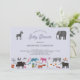 Con todo tipo de jungla, safari, zoológicos, mascotas, aves y vida salvaje. Un monstruo y un dinosaurio podrían haberse colado ahí también. Perfecto para la celebración de la ducha de bebé de un amante de los animales. Puede realizar fácilmente el personalizar de la invitación a su gusto cambiando cualquiera de los textos. Arte original de Nic Squirrell.