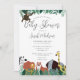 Esta tipografía moderna y elegante combina la tipografía moderna con la información personalizada de los animales de safari de la jungla con la invitación a la ducha para bebés. Diseñado por Thisisnotme©