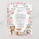 Esta súper ducha de bebé con temática de bosque de bonito cuenta con adorables animales del bosque y una suave cortina de vegetación floral rosa. Utilice las herramientas de diseño para editar el texto, cambiar el color de fuente y el estilo para crear un diseño único de invitación.