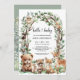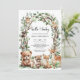 Celebra una nueva y dulce llegada con esta encantadora invitación a la ducha de bebé con temática de bosques. Con una corona de flores adorablemente ilustrada, adornada con adorables animales del bosque, incluyendo un oso bebé, flor, zorro, conejo, mapache, búho, ardilla, etc., este diseño crea una atmósfera cálida y caprichosa perfecta para dar la bienvenida a uno pequeño.