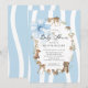 Celebre la próxima llegada de su pequeño hijo con nuestra encantadora invitación para una ducha de bebé, que incluye adorables animales de bosque rodeados de un moderno fondo de rayas azules. El moderno arco de coqueta azul le da un toque de elegancia y capricho, haciendo de esta invitación un lugar ideal para una celebración temática de los bosques. Invitar a sus seres queridos a compartir la alegría de esta ocasión especial con un diseño que capta la dulzura de los nuevos comienzos.