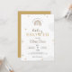 Invitación a una ducha de bebé con arco iris blanca y dorada. Acentos de estrellas de oro.