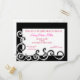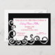 Esta divertida invitación consiste en giros en blanco y negro y acentuados con texto rosa en el marco interior.