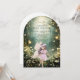 Una mágica invitación a la ducha de bebé con arco de un bosque con temática de hadas, con un entorno de bosque encantado en el bosque con brillantes luces colgantes y un hada en un camino arbolado. Disponible en versión impresa, como descarga digital para enviar por teléfono, o ambos.