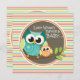 Invitación Baby Shower de búhos, franjas de arcoiris brillant