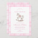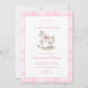 Celebra la próxima llegada de un pequeño con nuestra encantadora Invitación de Baby Shower a caballo de roca rosado. Este diseño dulce y lúdico combina el encanto vintage clásico con un toque moderno, con un delicioso mecedor a caballo acompañado de un suave acento rosa pastel, perfecto para una ducha de bebé o para quien ame un tema atemporal. Características: Diseño Adorable: Un ilustracion de caballo mecedor con detalles de manchas rosa suave crea un aspecto nostálgico, aunque fresco, para su evento. Personalizable: Personalice fácilmente con los detalles de su evento, incluyendo el nombre, fecha, hora, ubicación e información de RSVP. Impresión de alta calidad: disponible en cartuchos premium o como descarga digital conveniente para impresión rápida en casa. Encanto vintage: La combinación de estampados y un mecedor evoca un ambiente acogedor y tradicional, perfecto para un evento cálido y acogedor. ¿Por Qué Elegir Esta Invitación? Esta invitación da un toque lúdico y sofisticado a la ducha de bebé. El símbolo del caballo balancín evoca recuerdos de infancia, mientras que la manta rosa añade un toque de dulzura. Ideal para los que buscan un ambiente rústico y vintage con un toque contemporáneo. Haz que tu ducha de bebé sea inolvidable con esta encantadora Invitación de Baby Shower de caballos rocosos rosados y rocosos - un diseño atemporal que celebra la alegría de esperar uno pequeño! ¡Avísame si quieres personalizarlo más o añadir detalles adicionales!