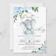 Invitación Baby Shower de cacahuete de Elefante Floral Azul