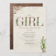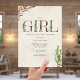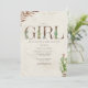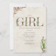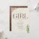 Boho baby ducha temática con letras "Chicas" en textura falsa inspirada en el cuero, decorado con cactus boho y otros diseños botánicos y florales. Diseño botánico en las esquinas. El fondo está inspirado en las acuarelas. El reverso es un diseño inspirado en el cuero falso.