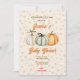 ¡Celebra la dulce llegada de tu calabaza pequeña con esta adorable invitación de la calabaza Baby Shower! Con un encantador diseño de calabaza, hojas de otoño y colores cálidos de otoño, esta invitación es perfecta para una acogedora ducha con tema de otoño. Personalizar los detalles para hacerlo único tuyo, e invita a tus invitados a una encantadora celebración llena de amor, alegría y encanto de temporada. Ideal para una ducha de bebé con temática de otoño o cosecha, esta invitación marca el tono para un evento memorable y festivo.