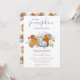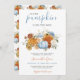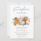 Celebra tu calabaza pequeña con esta invitación de Baby Shower de Boy Blue Pumpkin. Con una deliciosa mezcla de vibrantes calabazas naranjas y azules rodeadas de flores rústicas de otoño, este diseño combina el encanto de temporada con una suave paleta de colores amigable para los niños. Perfecto para una ducha con temática de otoño con un toque acogedor y elegante. BBS918