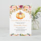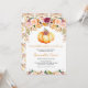 Bienvenidos a su pequeña con el calor del otoño utilizando esta encantadora invitación de Baby Shower de calabaza floral. Con una vibrante calabaza de acuarela naranja con flores de suave caída y exuberante vegetación, este diseño aporta belleza de temporada y encanto rústico a su celebración. Bonito marco floral en cálidos tonos otoñales, perfecto para una acogedora ducha de flores en otoño en honor a la futura madre. Celebra la llegada de tu calabaza dulce con estilo con este cálido y caprichoso diseño. BBS162
