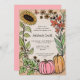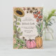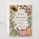 Los suaves tonos otoñales y un marco de girasoles, hojas de arce rojas y calabazas naranjas y rosas festivas hacen de esta invitación a la ducha de bebé una elección fácil para celebrar a la madre de estar en una ducha temática de cosecha de otoño.