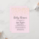 Esta invitación a una ducha de bebé con una caligrafía rosa Gold Confetti es perfecta para una ducha de chica elegante. El diseño se caracteriza por un confetti de oro falso sobre un fondo rosa con una elegante caligrafía gris.