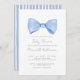Una hermosa y clásica ducha de bebé de color azul con un adorable y sencillo arco de color azul cielo. Una simple y minimalista ducha clásica para bebés. Texto gris en una mezcla de tipografía de tipo de letra y guión de serif. ¡Celebra que la madre tenga estilo! Puedes cambiar los colores de las fuentes a lo que quieras. También puede cambiar el color de fondo en la parte delantera y trasera. Incluso se puede cambiar el color de las franjas blancas que están en el diseño trasero. Simple Invitación de Baby Shower Blue Bow Boy. Disponible en forma de invitación impresa, o como una invitación digital descargable que puede enviar por correo electrónico o que ha impreso localmente.