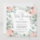 Una hermosa invitación a la ducha de bebé femenina con un ramo de adornos acuarelas, rosas, eucaliptos y vegetación en tonos pastel beige, rosa, verde y azul verdoso. La forma cuadrada y el estilo de moda de los pares de caras que incluyen escritura a mano y elegante serif hacen de esto una invitación única y encantadora que sus invitados estarán encantados de recibir. Esta invitación es una gran elección para la futura madre que espera una niña. Personalice la plantilla de texto fácil de usar con los detalles de su evento.
