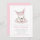 Chica conejo conejo conejo conejo en un fondo floral de color rosa pastel con acuarela. Esta tierna invitación a la ducha de bebé conejo de bebé es fácilmente personalizada para tu evento simplemente agregando tus detalles. Puede cambiar el color de fondo al frente y al reverso.