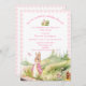 Una encantadora y delicada ducha de bebé con una suave paleta pastel con un marco de gingham rosa. El diseño incorpora ilustraciones dulces de Conejo y acentos florales en tonos suaves de color rosa rosa y verde sabio. Flores y vegetación fantásticas rodean el gráfico de conejo dulce que le da un toque elegante y juguetón. Perfecto para dar la bienvenida a una niña.