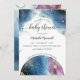 Única invitación a la ducha de bebé con magnífico globo de constelación, manchas acuarelas, estrellas delicadas y detalles modernos de caligrafía escrita a mano en una hermosa mezcla de azul, marina, verde azulada, turquesa, violeta, magenta, fucsia y tonos dorados. Ideal para celestiales, astrología, cósmicos y con ducha de bebé estrellada. Parte de nuestra colección "Mystic Garden Celestial" con una variedad de productos de coordinación disponibles.