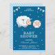 Sorprenda a sus huéspedes con esta bonita ducha de bebé, que incluye una adorable oveja y cordero con elementos vibrantes sobre un fondo azul. Simplemente agregue los detalles de su evento en esta plantilla fácil de usar para convertirla en una invitación única. Voltea la tarjeta para mostrar un patrón elegante de franjas en la parte posterior de la tarjeta.