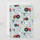 Este bonito diseño rústico para niños con una ducha de bebé cuenta con un tractor rojo. En el reverso de la tarjeta hay un patrón de granja equivalente, con un tractor rojo, vacas, cerdos, ovejas, pollos y flores, y se puede personalizar con los nombres de los padres y otros detalles necesarios para su fiesta. La perfecta combinación de temática campesina y moderna ducha de bebé en pareja.