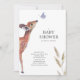 Una moderna invitación a la ducha de bebé en un bosque. Elementos coincidentes disponibles en la colección de temas de Baby Shower Modern Woodland Fawn.