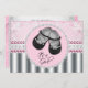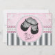 Adorables zapatos de bebé negros elegantes de diamantes rosas y plateados y invitación a la ducha de perlas. Esta dulce invitación a la ducha de bebé se personaliza fácilmente para tu evento.