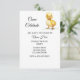 Celebre la próxima llegada de su paquete de alegría con nuestras invitaciones para la ducha de bebé. En la esquina superior derecha, adornada con un adorable patito de la acuarela, esta invitación hará que el corazón se caliente y que el tono de un día tan inolvidable como encantador. La representación suave y lúdica del pato crea un ambiente agradable y acogedor, perfecto para reunirse con amigos y familiares para ducharte con amor. Con un texto de personalizable que se ajuste a tus detalles, estas invitaciones no son solamente un anuncio de las alegrías por venir, sino un recuerdo memorable de este precioso tiempo.