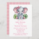 Invitación Baby Shower de elefante cúbico de pelo rosado