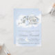 Invitaciones de baby shower de elefante niño con adorable elefante bebé con gorro de dormir y sosteniendo una estrella sobre un fondo de nube y estrellas azul bebé. Estas encantadoras invitaciones de baby shower de elefante se personalizan fácilmente para su evento simplemente agregando sus detalles. Puede eliminar o mover el biberón y el chupete.