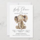 Anuncie su próxima llegada con esta elegante y neutra invitación a la ducha de bebé. El diseño es moderno y sencillo, con un elefante de safari de punto de acuarela simple y bonito, combinando texturas suaves con líneas depuradas para un aspecto caprichosamente adorable. Ya sea que su tema sea la llegada de un bebé de invierno, o simplemente un acogedor estilo neutro de género, este pequeño animal ofrece un lindo tema de carácter para su celebración. Disponible en papel, como descarga digital, o ambos!