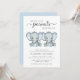 Una tipografía moderna y gris suave, con un guión elegante y acuarelas azul pastel de elefantes pequeños. Personalice el nombre de la futura madre y los detalles de la ducha virtual en una simple tipografía gris.