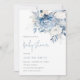 Invitación Baby Shower de flores azules y blancas en cielo se